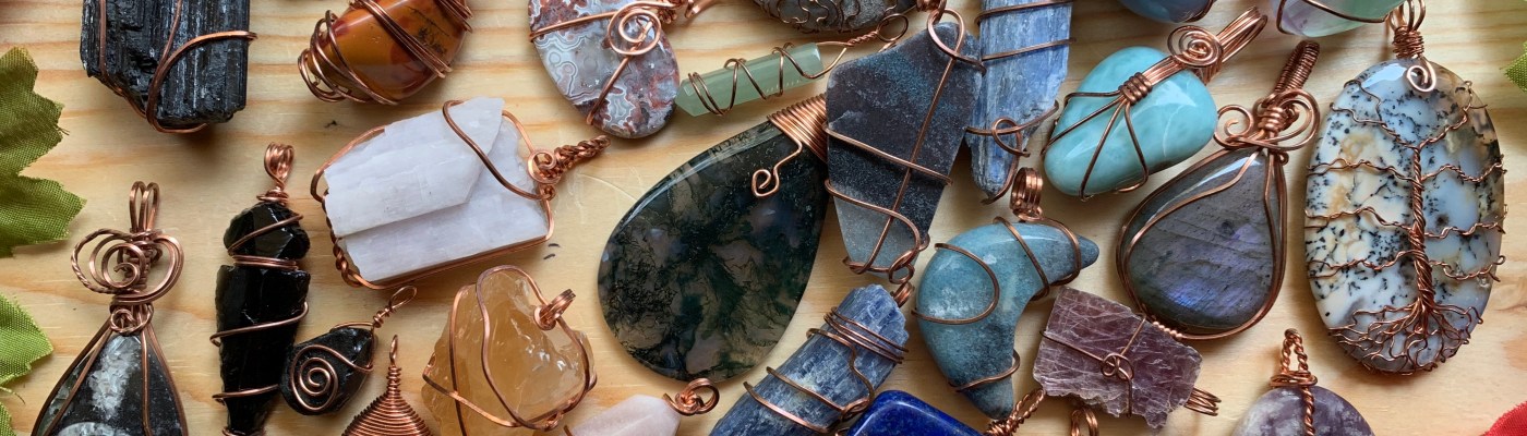 The pieces are mostly influenced by the crystal itself. Most are intuitively wrapped, meaning I just let the wire go where it wants. I even have ideas come to me in dreams.